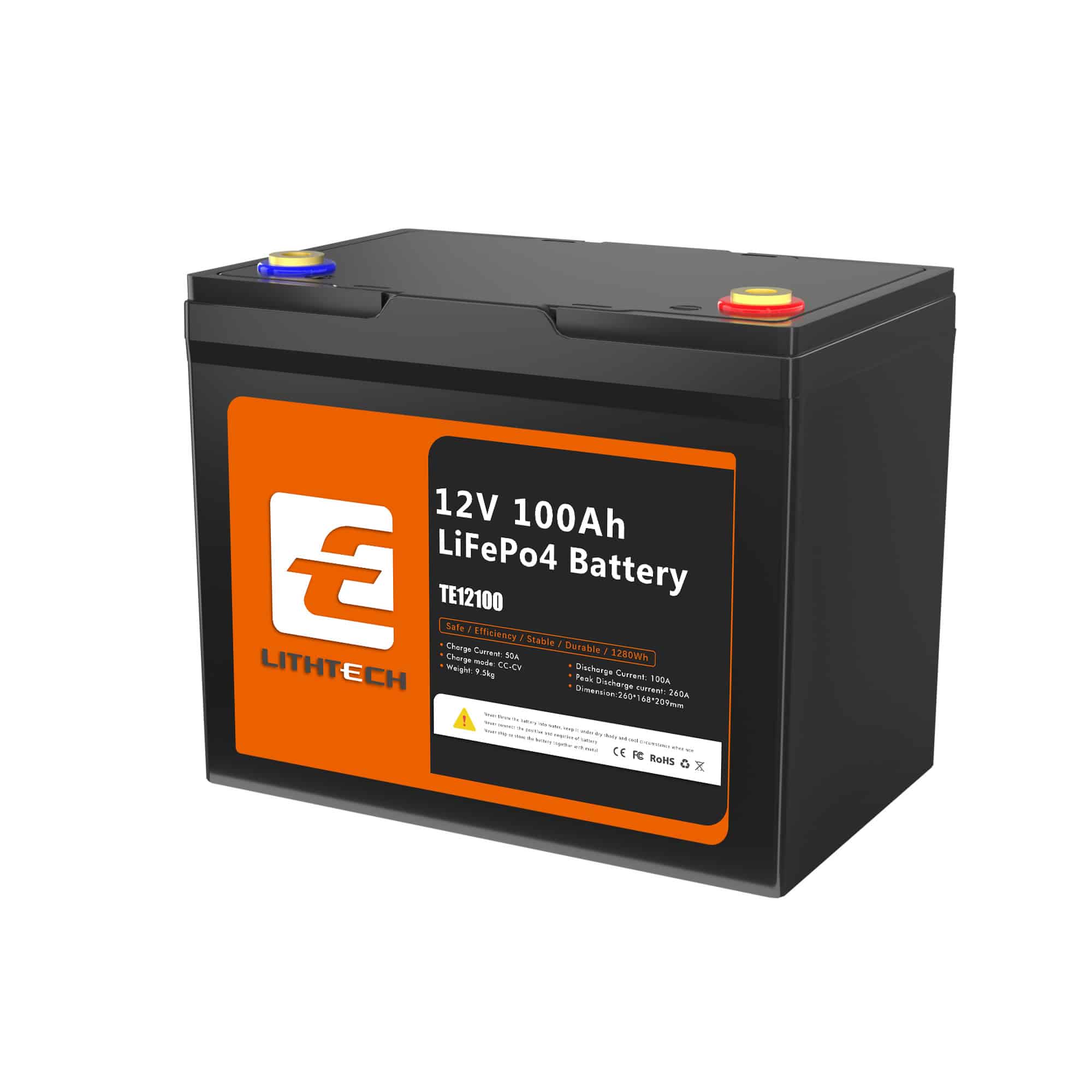 Key Features of the LITHTECH 12.8V 100Ah LiFePO4 Battery Pack: